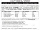 The County Assembly Service Board of Embu (CASBE) is established pursuant to section 12 (1) of the County Governments Act 2012 as a body corporate with perpetual succession. It has four members: Hon. Speaker of the Assembly as the chairperson; Leader of Majority as the vice-chairperson and Leader of Minority and one person resident in […]