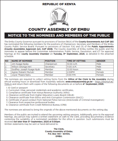 NOTICE TO THE NOMINEES AND MEMBERS OF THE PUBLIC Public Notice Public Participation September 2, 2025September 2, 2025 Victor Njue737